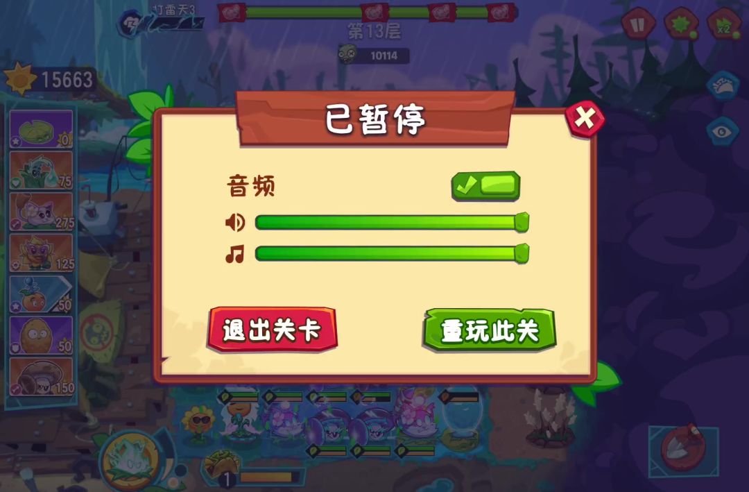 下面公布我发现的 1.卡顿没的说,比ppt还要ppt 2.打完了,最后两个僵尸怎么都摸不着,就这么卡在这了。樱桃还能麻痹 3. 刚出的蘑菇队长,被雷劈了居然有能量条。并且开局身上放樱桃变电系,开局第一波雷劈上去居然不出能量条(土豆会出) 4. 视频没录着,倒数第二行电系土豆(不确定是不是固定某一格)开护盾不掉蓝掉血。。。 5. 顺道说一下,潜能最近别刷了,花了五十多药剂出了三金加上自己已有的一个正