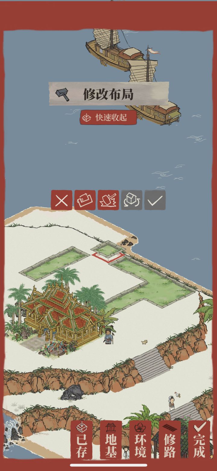 椰子岛这里的两个格到底是什么东西呢?明明没放任何建筑啊……选择地基模式的时候就会显示出有俩东西占着#江南百景图#椰子岛