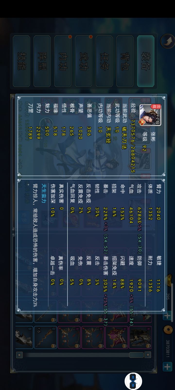 个人记录向,基本没有多大参考价值,说实在的,我这个宠物真心比卡楚柔的人好太多太多了宠物及武内:文涛:年狼抗暴,冰霜掌+金钟罩千沫:年狼,冰火掌+易筋经阿星:冰猪,乾坤+日月阿飞:反震低血,华山a+惊涛(反震)刀主:虎雕高攻高暴(满级),破天+天玄(暴击)#楚柔#儒沐江湖