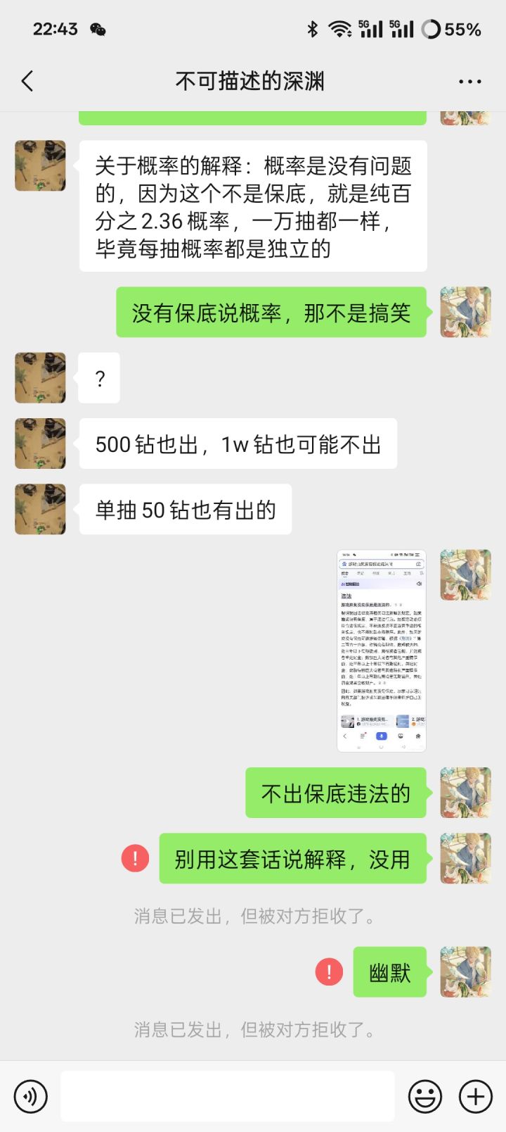 没有保底的抽卡游戏是违法的,官方微信删我