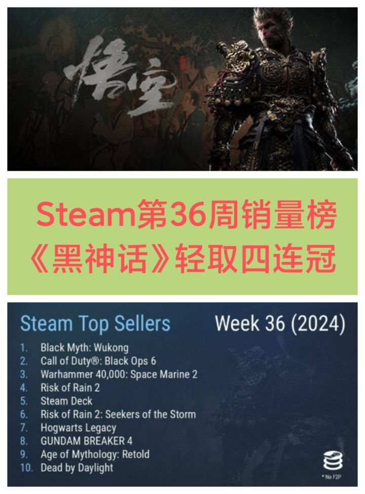 《黑神话》四连冠❗Steam第36周销量榜🔥🔥🔥