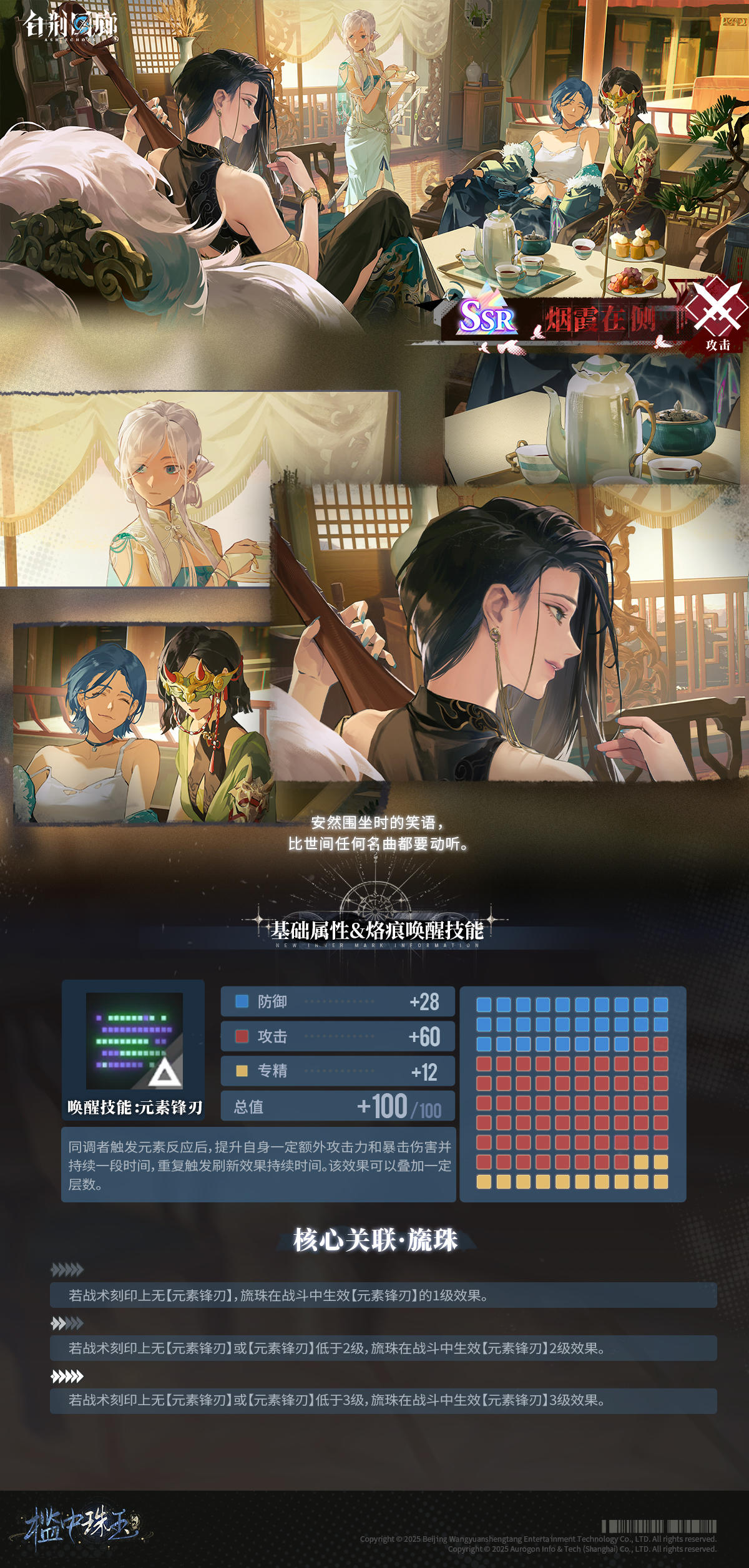 ▶开放时间12/04 10:00 - 12/25 03:50 ▶UP记忆烙痕SSR:烟霞在侧 更多详细潜航信息,监督可登录游戏获取。 #白荆回廊 #槛中珠玉