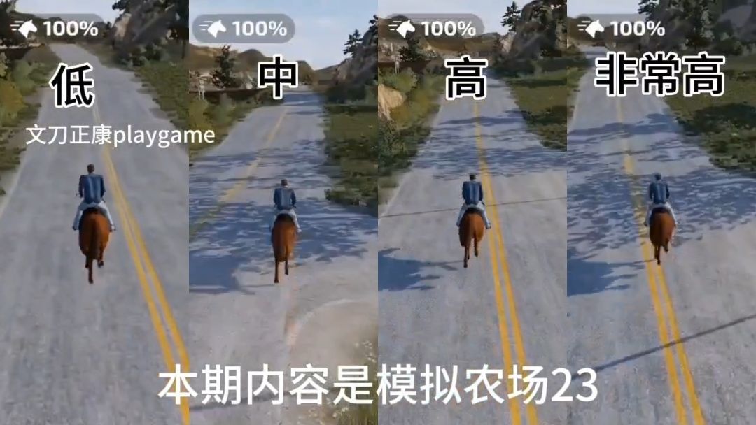 模拟农场23:不同画质骑马视频对比
