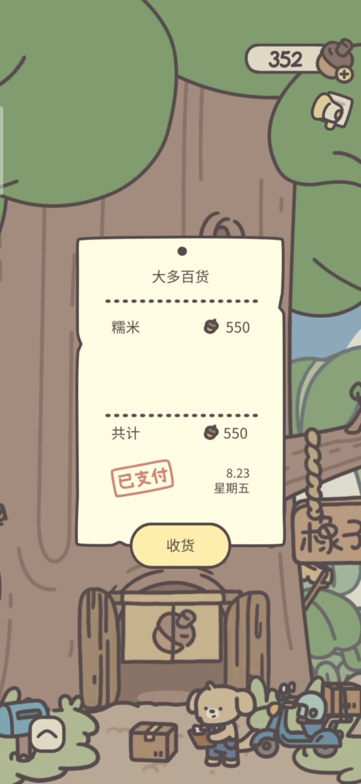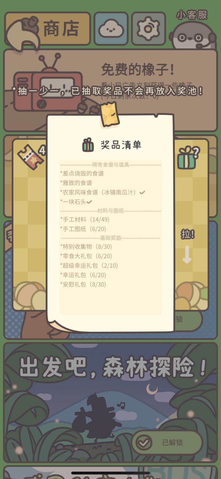 #橡子屋 #橡子屋来了 #橡子屋公测 #橡子屋攻略 图1:食品目前来说:1.咖啡最高30橡子 2.麦汁25 3.饭团20 4.烤苹果15图2:第一次送货的来了会获得爷爷买的(糯米)就可以解锁饭团🍙了!图3:这时候就解锁百货超市了可以开始买东西解锁食品:麦茶,麦汁,烤苹果。图4:麦汁的话商店有的话直接买价格是200不用食谱买了就能做了图5:看广告会获得50橡子1个广告劵图6:有闪闪