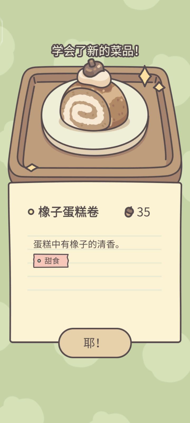 今天迎来新客人——多多~不过我好想叫它小多,因为杂货店老板叫大多嘿嘿多多是个可爱宝宝,偷偷来买小饼干🍪,哪能咋办,当然是给它做啦~大早上就捡到好多橡子,还捡到两个漂流瓶,今日lucky成功get✔一个漂流瓶里藏着潜心研究的蛋糕师给的食谱,成功让我们小松研究出新品——橡子蛋糕卷🧁~嘿嘿开始流口水了#橡子屋 #橡子屋公测 #橡子屋客人 #橡