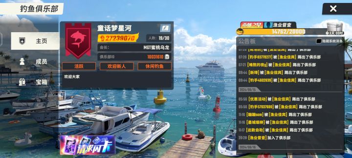 新建俱乐部收人,600w以上欢迎加入。俱乐部id10178780。会长1300w战力欢迎各位。21号龙舟竞赛大家一起happy#欢乐钓鱼大师 #欢乐钓鱼大师俱乐部
