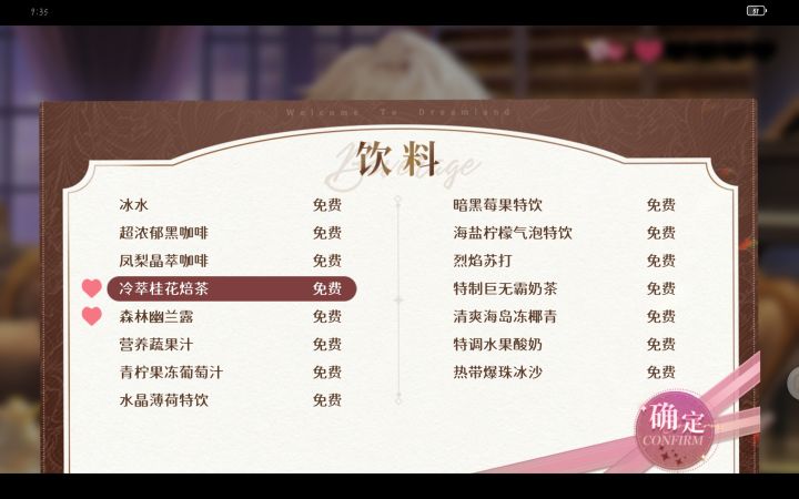 饮料:暗黑莓果特饮食物:樱桃脆饼黑巧派回答一:反正没你擅长回答二:因为好奇回答三:免费冰淇淋!真不错啊。回答四:别生气啦~我们出去玩回答五:没问题!回答六:生气了?回答七:你说呢?回答八:对我来说你无聊一点是好事———评论补充回答:也有蛇类噢回答:换个坏心情#攻略 #游戏攻略 #欢迎来到梦乐园攻略