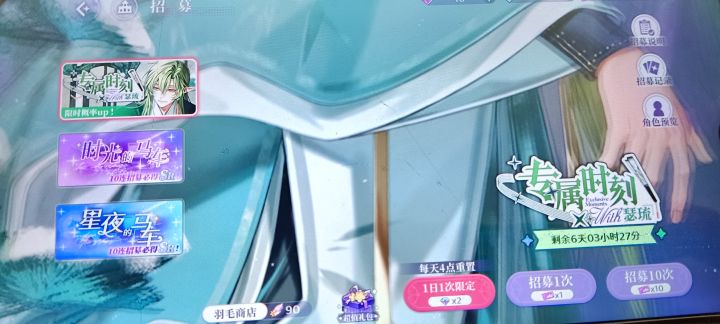 在我抽出最后一个十连时,我看到了彩色的马车,我隐约听见了一个温柔的声音说着“放心吧,我不会让你的期待落空的”然后一只海鸥飞了出来,身穿紫色长衣的他温柔地看着我,像早已等候于此。先抽了40抽抽德米安,然后用剩下的钻抽瑟琉,本以为会抽卡常见歪,但他没有,他突破了抽卡的限制,微笑着将手伸向了我#欢迎来到梦乐园 #欢迎来到梦乐园瑟琉