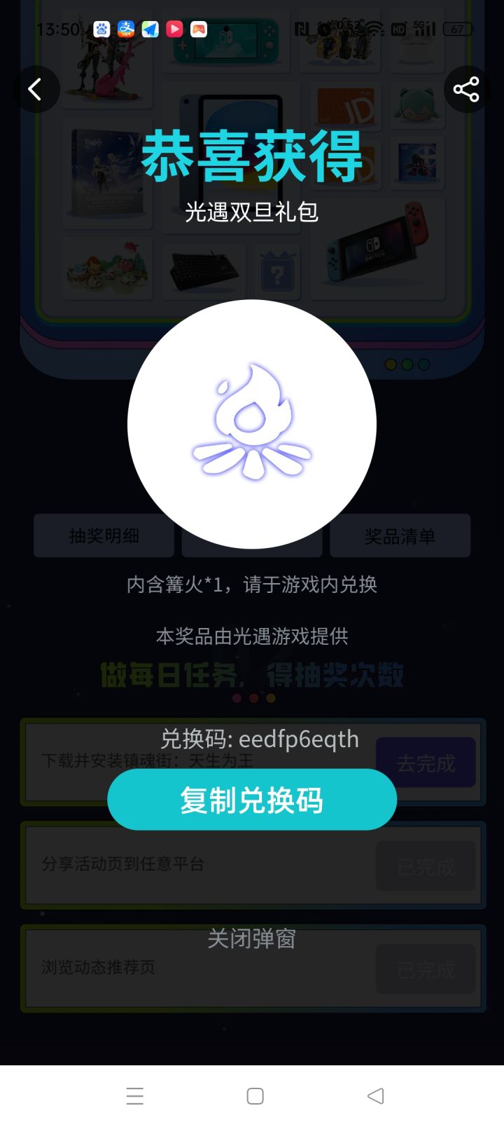光遇一个篝火兑换码,要的自取