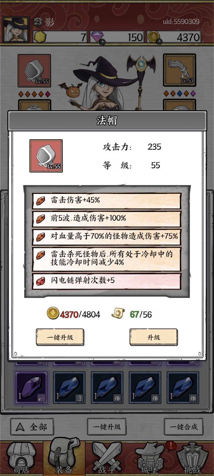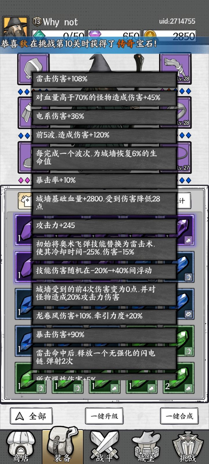 我玩的主电系,首冲出的代替雷击,加了一个初始闪电链,配合闪电龙卷,各项宝石也是围绕着电系在弄,除了个别关卡有电免疫的怪换上激光补一下,都还不错,玩了2个半月了,两张月卡免广告(共计60$),每天当收菜养成游戏,目前卡关48,挑战是在69层,慢慢堆伤害就行。#正中靶心