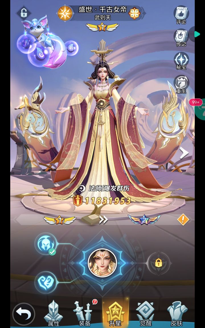 在蝴蝶极少的区。今天玩了玩,1020潜的10星武则天+专属神兵+霍德尔永恒+无脑主c一速出手。pvp高频轰炸秒天秒地噶噶爽啊,比李白c还爽才10星就这么舒服了,非常期待三天以后的11星强度得多猛期待了三四个月的武则天棒棒的。不论颜值还是实力,十分满分我给十二分!希望上古越做越好哦,是金子总会发光的。武则天我个人非常非常满意