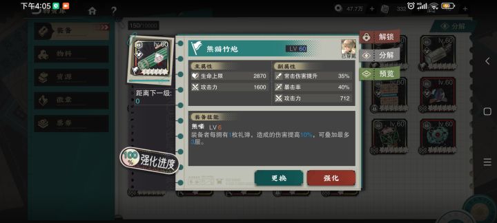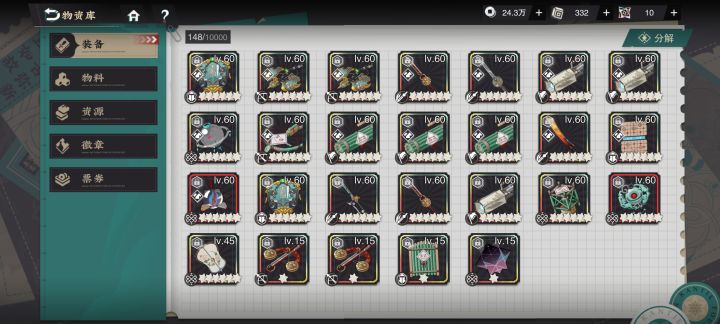 说实在的武器这种东西就是旱的旱死涝的涝死,我这号只用大号一半的体力阵容武器就全毕业了,这还是小号,大号你想想更恐怖,大号基本都是大毕业武器,小毕业都分解的另外讲个恐怖故事,最后一张图的所有武器基本都是毕业武器就这五把毕业大炮有些人再刷一年也不一定能刷出来可惜了,只能上九张图另外我想说武器这种东西没有玄学,就是旱得旱死,我深有体会