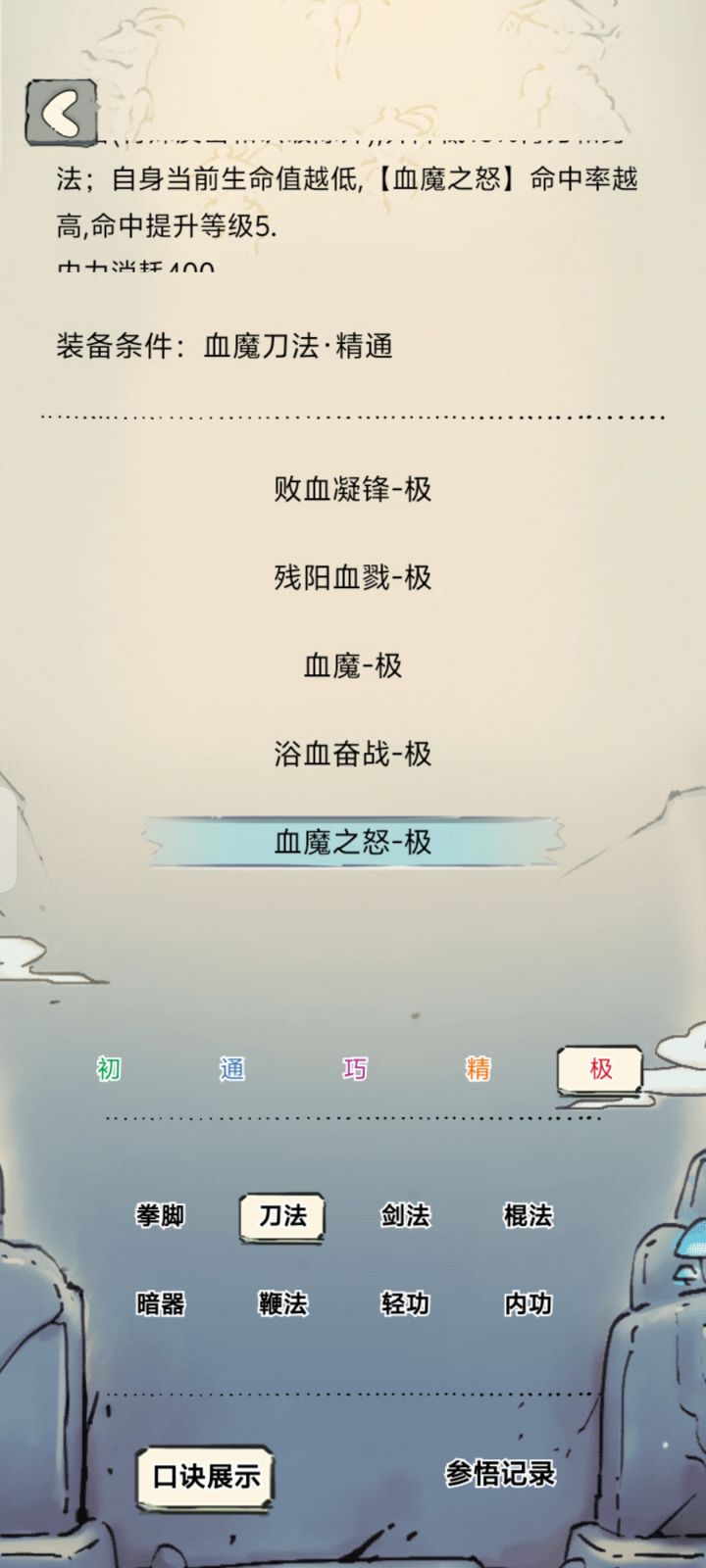 三刀这个武学好像快被遗忘了,出领悟后是否能重新进入大众视角?先谈谈我个人的猜想吧从三刀面板可知,三刀是一门双加成武学。作为一门门绝,如果出领悟可以提升面板,首先就是臂力和身法加成由中等变成很多,这个有很大概率是要提升的。普攻伤害为1.4,第二次领悟后普攻应该会变为1.5 同时领悟难度变成2.0,提升真元含金量,其他面板属性可能会提高命中,或者再加一个少量内力加成(参考雪饮内力加成和
