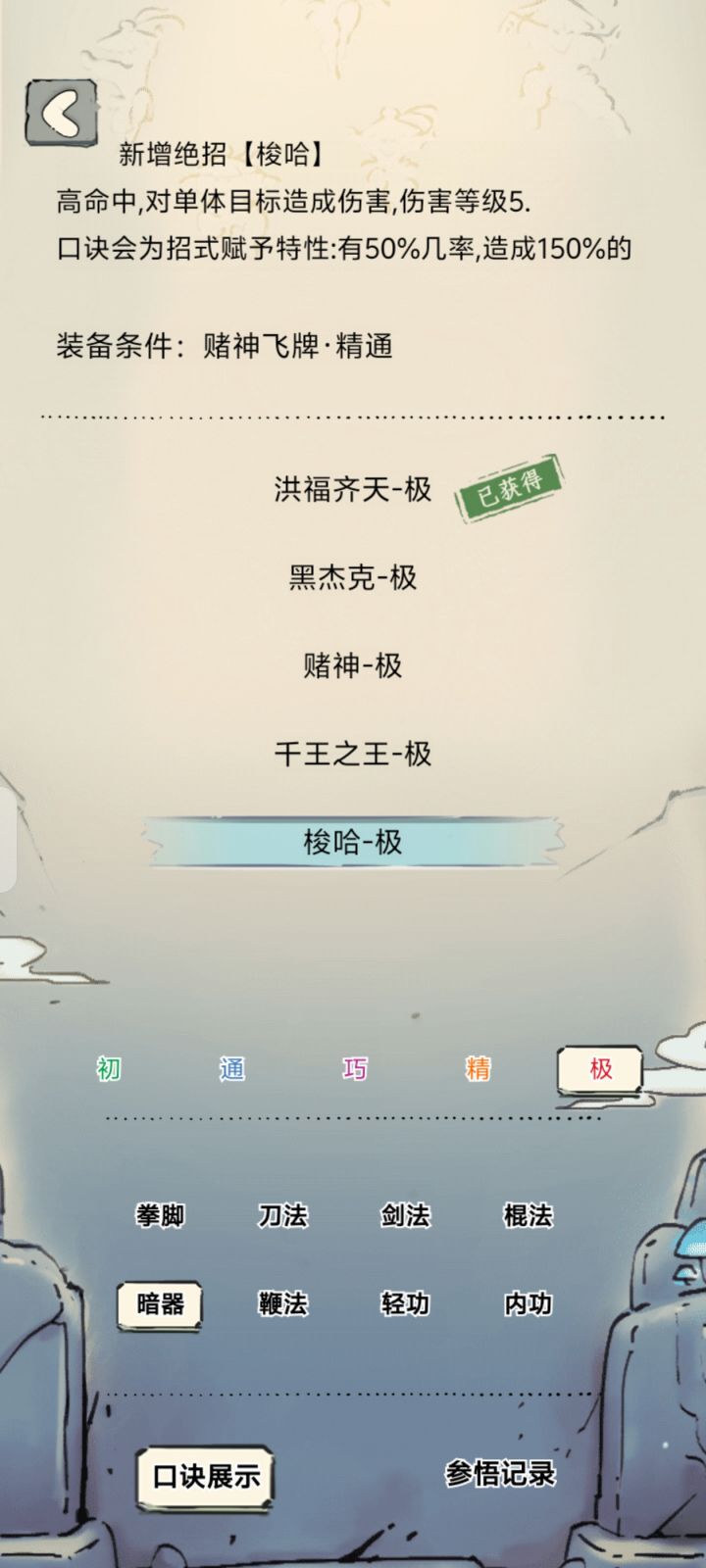 思路很简单,主要是对那些对武学领悟一窍不通的人进行科普,我自己懂得也不多,写的不对还请各位大佬一一指正首先是领悟机制吧:武学领悟需要花费武学残章,残章可在偶货商处,花费福地碎片进行兑换,用于对武学进行领悟。领悟后,可以在领悟界面勾选领悟技能。领悟技能需要去商城进行抽奖,使用[书签],可以氪金/偶货商处福地碎片兑换/金条买获得。废话这么多,都是最基本的概念吧。那么来讲几个事儿,都是萌新问的Q