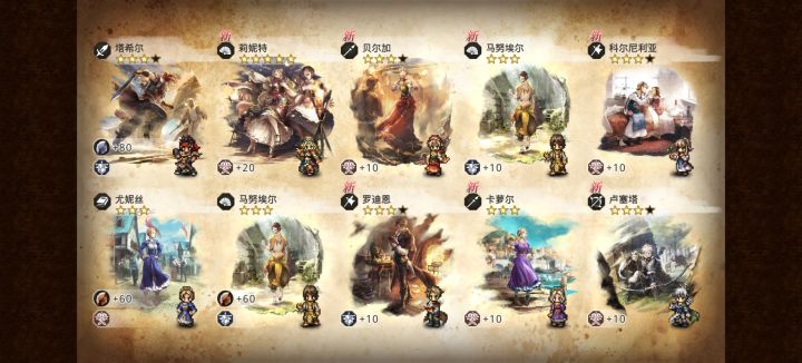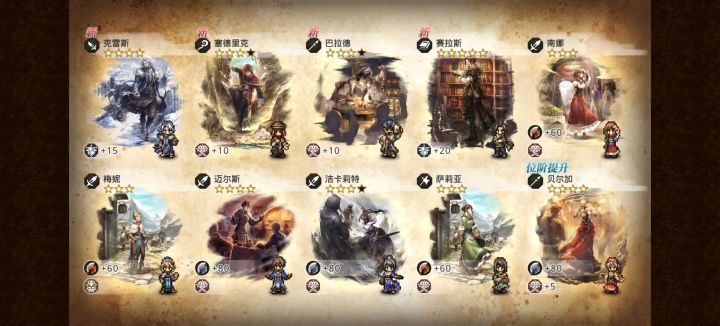 闪光的旅人40抽2个5星(商人 吉尔德罗伊和舞者 莉妮特);被选中的旅人第32抽没歪(学者 塞拉斯);充月卡拿了首充奖励5星洁卡莉特;自选拿了游侠 薇欧拉。#歧路旅人