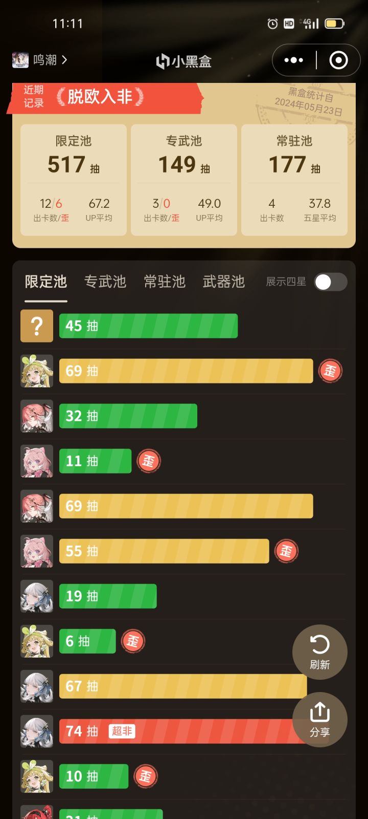 七十抽出了个刻晴