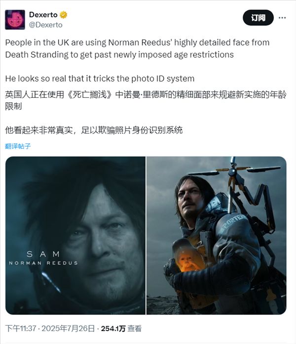 还有这种操作!《死亡搁浅 2》建模逼真,玩家用主角脸破年龄限制7月27日消息,英国新《网络安全法》于7月25日正式实施,要求网站和社交平台启用严格的年龄验证机制,以防止未成年人接触有害内容。不过据报道,这一机制却被《死亡搁浅2》的高拟真角色建模意外破解。根据英国监管机构Ofcom的规定,网站必须通过面部年龄验证、数字身份、信用卡验证、运营商认证等方式确认用户是否满18岁。社交和游戏平台也被