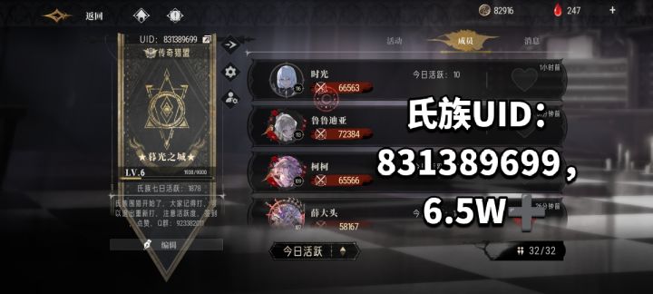 UID:831389699,6.5w战力➕#氏族围猎 #氏族 #游戏日常 #发现好游戏 #银与绯