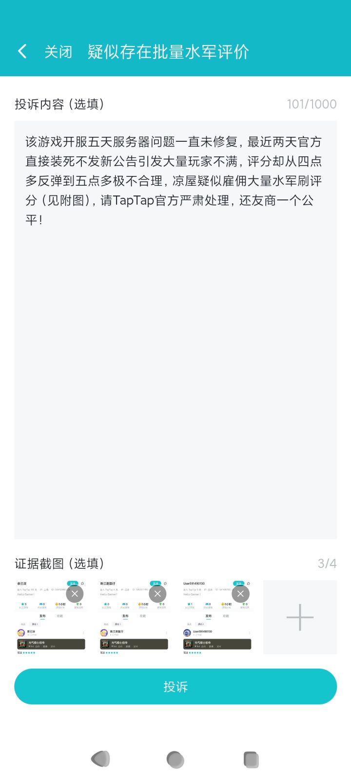 炸服五天装死两天,你游又在蒸蒸日上了?觉得有问题就像我一样去TapTap举报见图四,而不是只会发帖吐槽。#游戏时长分享大会#水军#刷评分