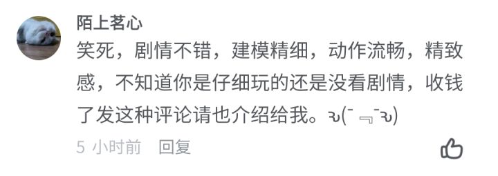 我分析了优缺点,也说了这游戏不是那么好,但是因为我个人玩着不错比较喜欢,所以还是给五星。结果就有人说我是收钱。合着就作为玩家不能喜欢一个大家都不喜欢的游戏了呗?也不能在游戏自己的评论区夸优点了呗?但是点开主页一看,我释怀了。#水军 #鸣潮 #鸣潮523全平台公测 #鸣潮全球公测开启 #鸣潮公测定档