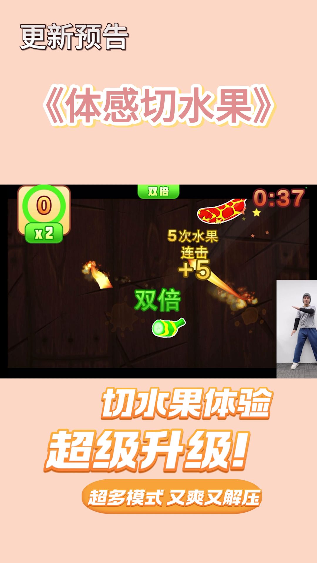 抢先体验!本次更新,全新的《体感切水果》将上线!切水果体验超级升级!超爽超解压!#切水果#体感游戏#水果忍者#天天跳绳App