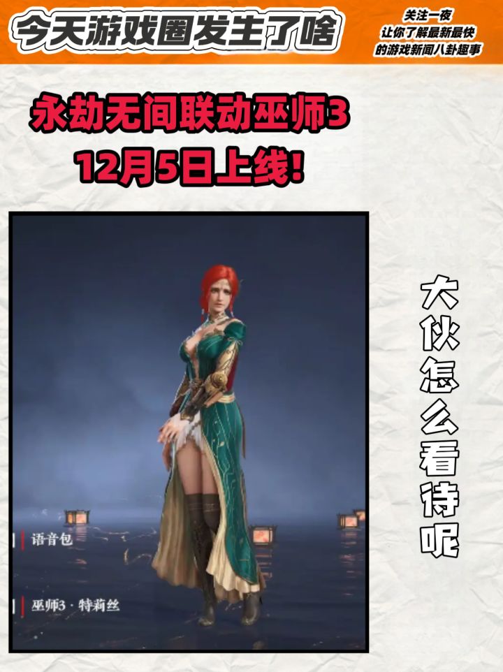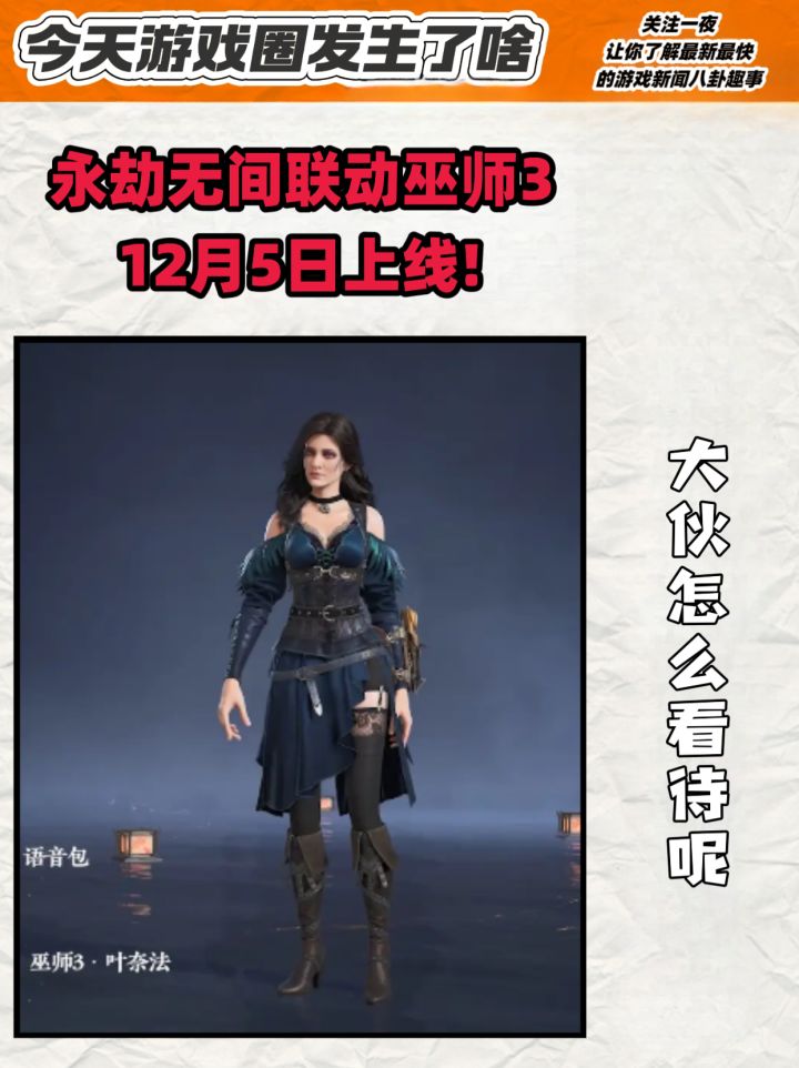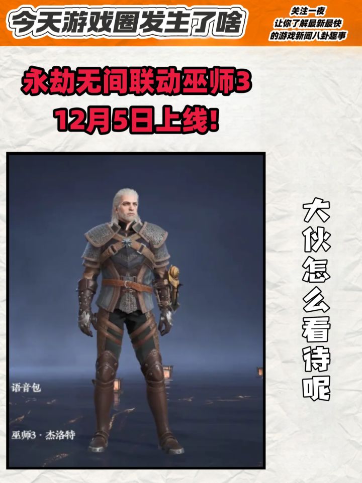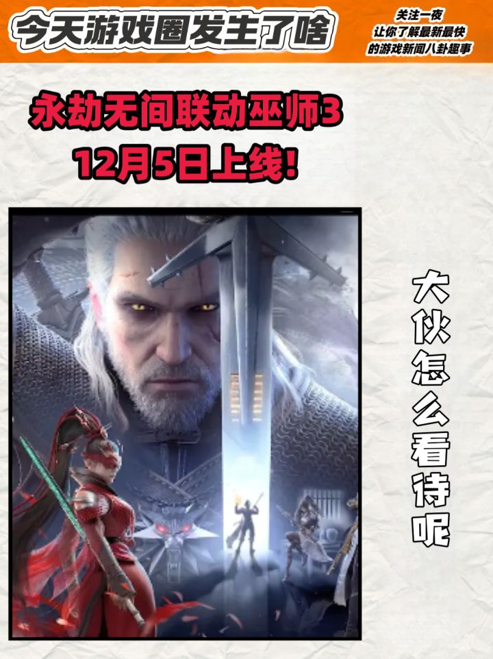 #今天游戏圈发生了啥 永劫无间官方今天发布新消息,永劫和巫师3的联动将在12月5日开启!嗯……女性皮肤本来是需要商城购买的,但如果你能拉新或者召唤好友回归,就能免费领一套?虽然我不玩巫师3但是我的席拉还穿着原皮,多少还是心动的,毕竟免费诶!#永劫无间 #永劫无间手游 #联动 #巫师3 #资讯评论员 #游戏资讯 或者有没有新人想来玩玩呢?