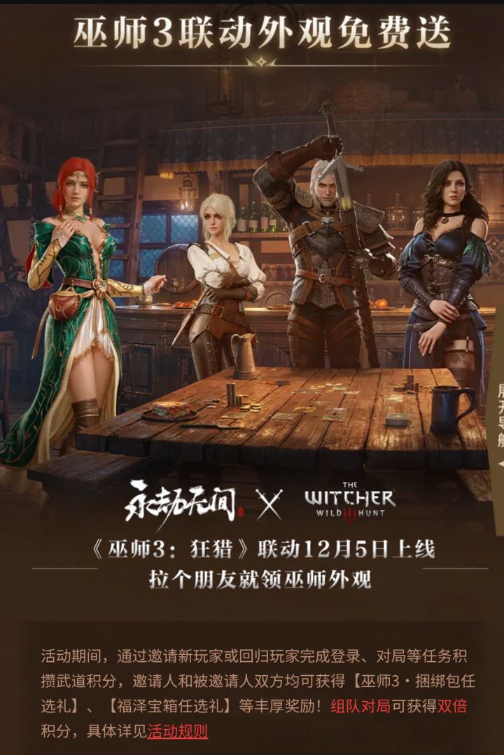 拉个朋友外观免费送!永劫无间X巫师3联动!