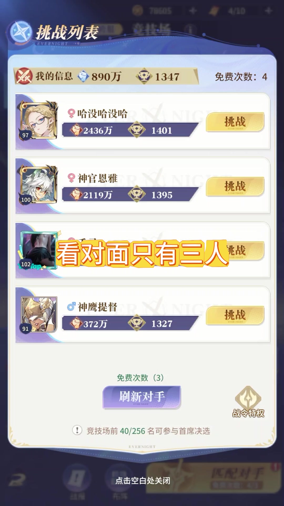 如题,逛竞技场看见个只有三个人的队伍,虽然战力比我高点,但想着人多应该不至于打不过。然后.....被爆打,龙皓晨,圣彩儿太离谱了,拼尽全力连换一个都找不到[心动小镇_难过][心动小镇_难过][心动小镇_难过] #永夜降临复苏 #游戏日常 #游戏杂谈