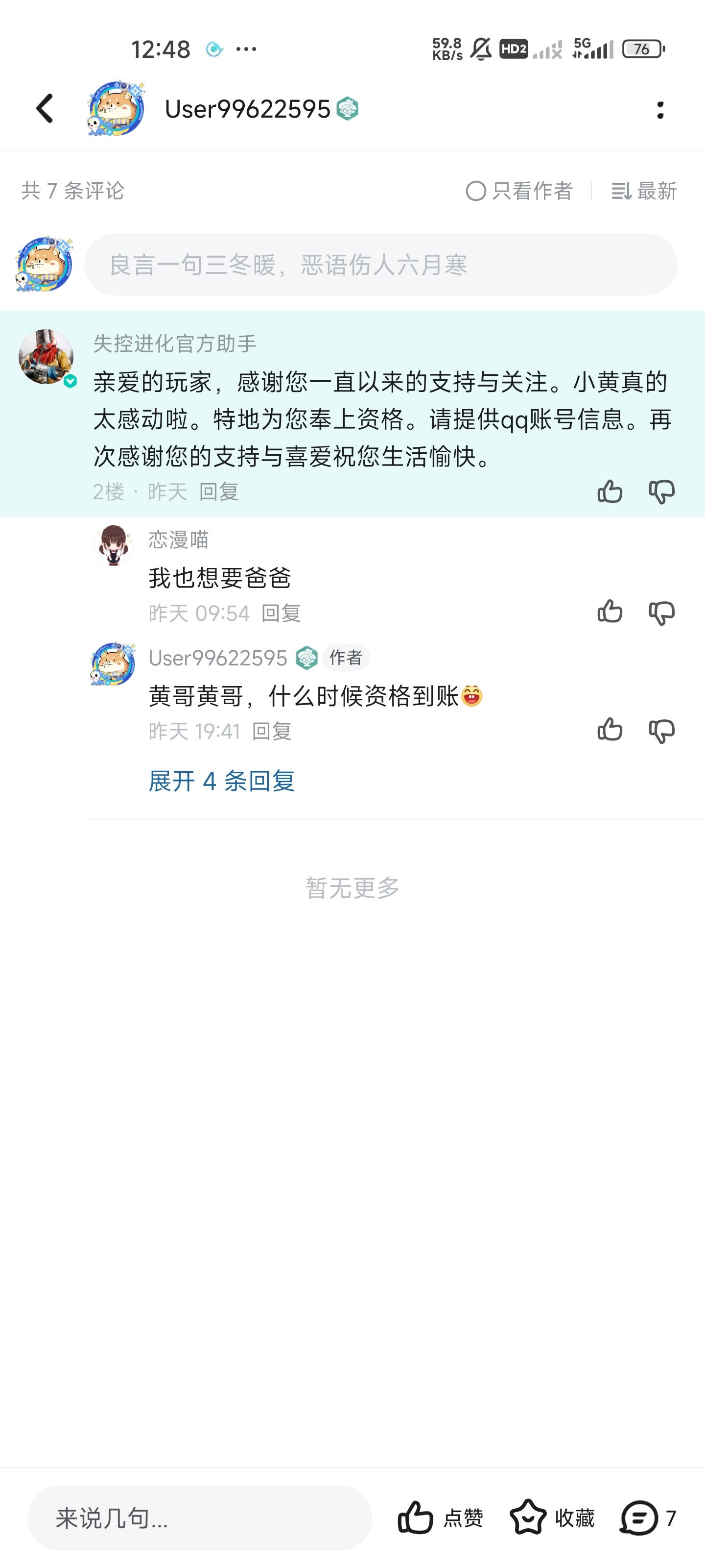 官方大道官方大大,我从4月份开始就关注这个游戏了,但奈何我运气太差,每次都与资格无缘,求官方大大给个资格吧 #失控进化 #求失控进化求游戏资格 #求失控进化求游戏资格3038946977