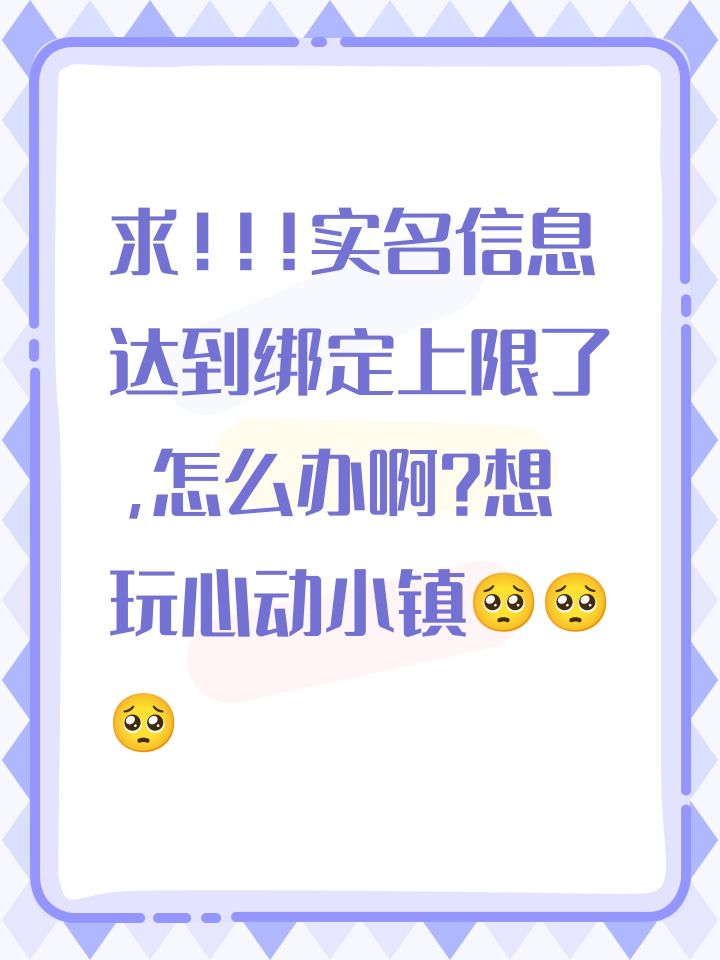求!!!实名信息达到绑定上限了,怎么办啊?想玩心动小镇🥺🥺🥺#求求求