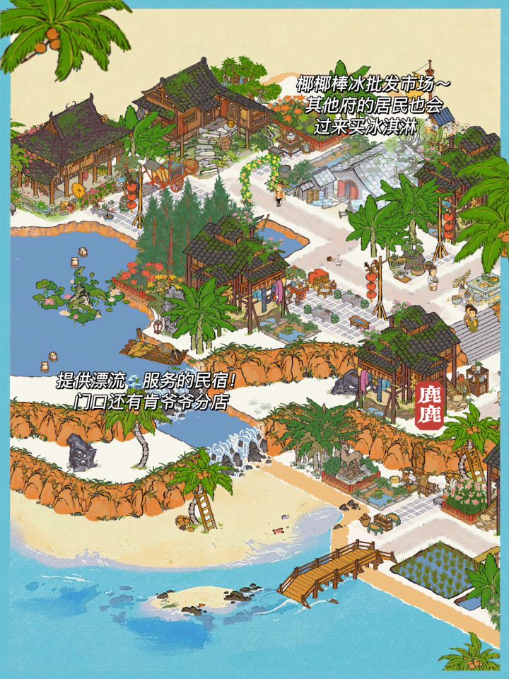 🥥欢迎抄作业🧊大家椰岛开到哪里啦🌴🌴真的很喜欢我的椰岛!昨天晚宴以后我就火速开完然后开始布置了,嘿嘿上面有很多小细节哦~😄虽然开地过程有些艰难,但是看见这么好看的椰岛,感觉整个人都好了~🌴总体风格偏平民向!目前包含4个仓库,11个民宅,海砂工坊和椰绳工坊各2。还有一些田和鱼塘。🌴布局地点:椰子岛。摇曳洲,邀约洲,椰影洲,椰风洲,植椰洲#江南百景图#江南百景图三周年#江南百景图三载正锦年