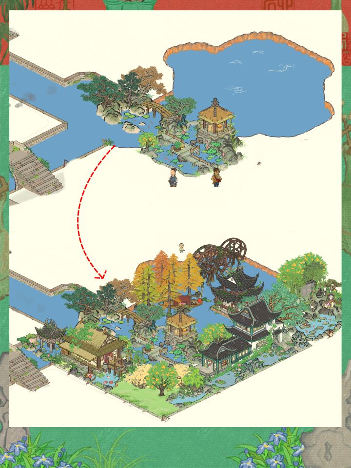 【烟雨桥】和【曲桥观荷】不仅完美衔接,更是让这个小水坑秒变大水域!#江南百景图 #江南百景图宁波府 #江南百景图之我在宁波当知府 #游戏种草计划