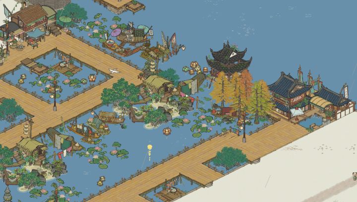 栈桥部分稍后再议,给我的水上居民区搬上来#江南百景图 #江南百景图布局 #江南百景图宁波府