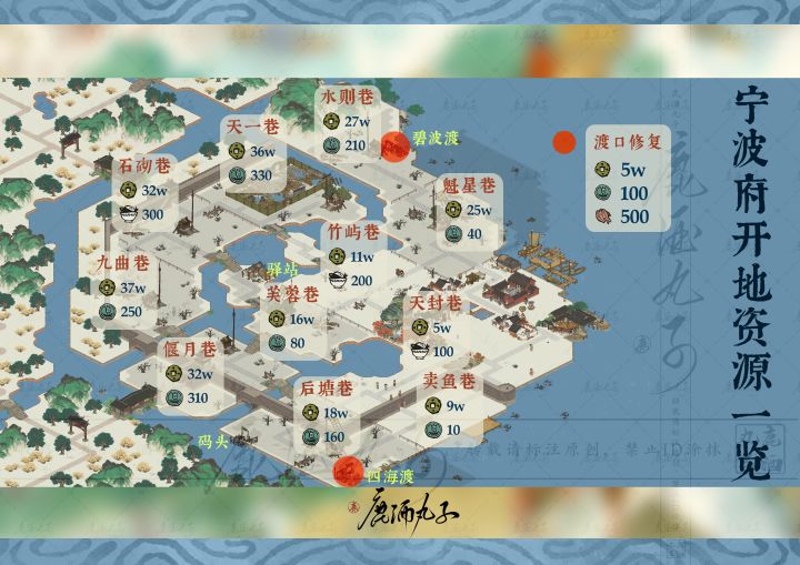 ⭐️开地所需物资⭐️修复渡口解锁其他板块🌿图5-开地消耗物资一览🌿图6-宁波府全城素材分享 #江南百景图 #江南百景图之我在宁波当知府 #江南百景图宁波府 #江南百景图攻略
