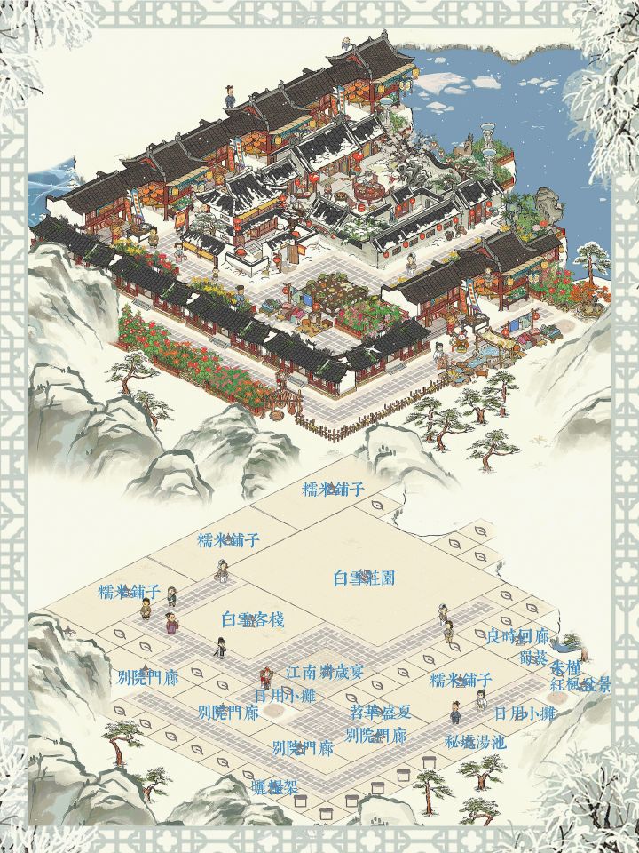 🏮岁暮天寒,瑞雪纷纷落江南。游园祈福,白雪镇里迎新春。🏮二月一日,龙年新春特别小镇「白雪镇」开启!❄2月1日11:00起,知府大人将游戏升级至3.1.0最新版本后,即可在游戏内主界面右侧领取「白雪镇地图」。当知府等级达至10级及以上后,即可通过大地图前往「白雪镇」!❄随着新春的临近「白雪镇」内将举行丰富的庆典活动,知府大人可通过「梅下祈福」「新春游园」「团圆家宴」等活动,收获全新建筑、体验全