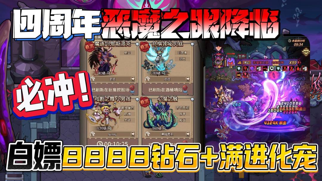 人人必冲!单手轻松爽刷,四周年豪华福利+恶魔之眼,入坑就开爽