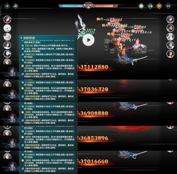 开累充和百晓万藏把第三个九级心法氪了出来,也顺带把夺舍的绝一取消了,全给仪律安上,看看效果怎么样,结果经过测试,有仪律3和仪律0没有任何区别,阵容如图,变量很多,故两种状态各测试5次尽量避免变量误差,记满藏锋释放之后,薄受叶满怒气加持的第一次绝技伤害,结果出奇的相似,红线划着的是仪律绝三的,没有红线那组数据是把九级心法换到夺舍去的结果。有大神或制作人员解说一下什么情况吗?是bug吗?如果不是bug