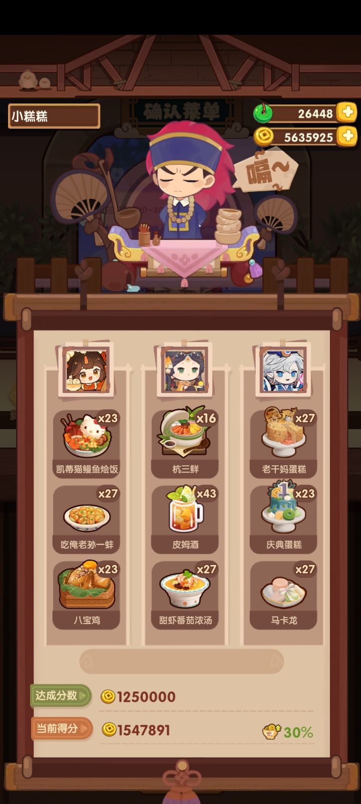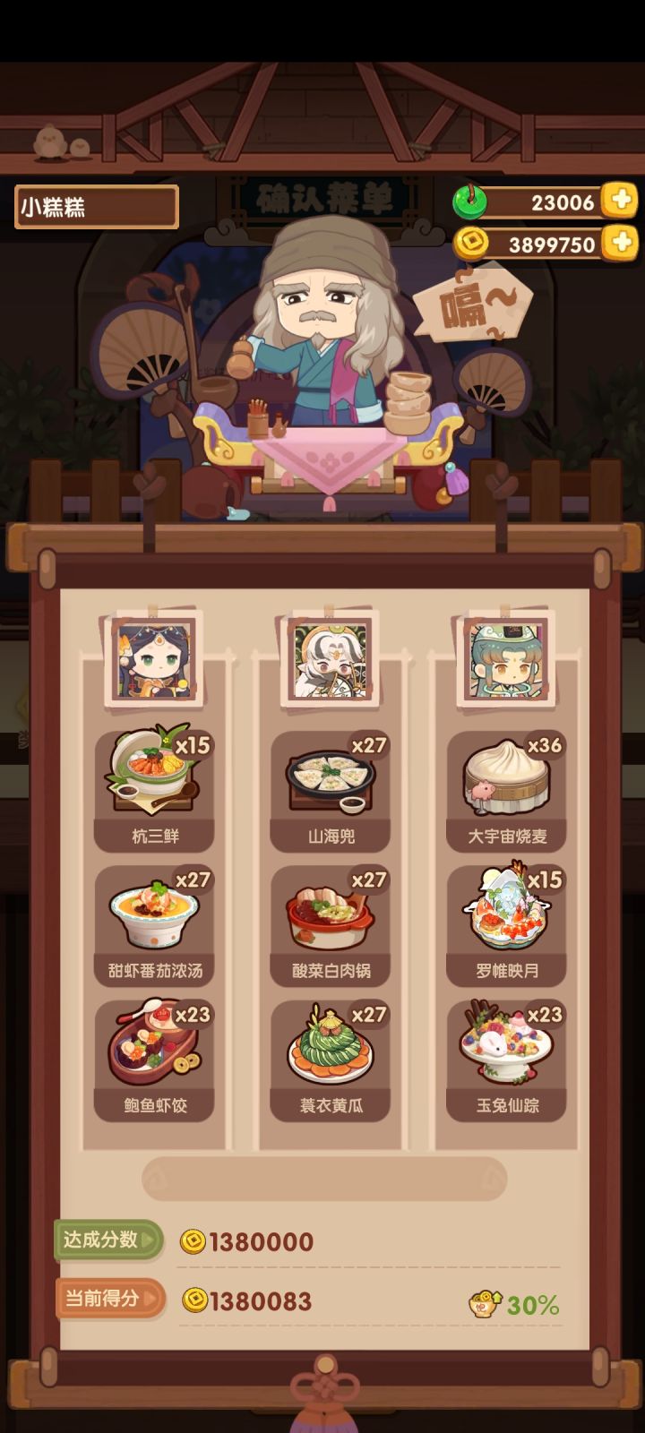ID97385,自己试了5次只能拿到倒数第二低的档位,恳请大佬帮忙计算一下,真得太感谢啦!#省级宴会#江湖宴会