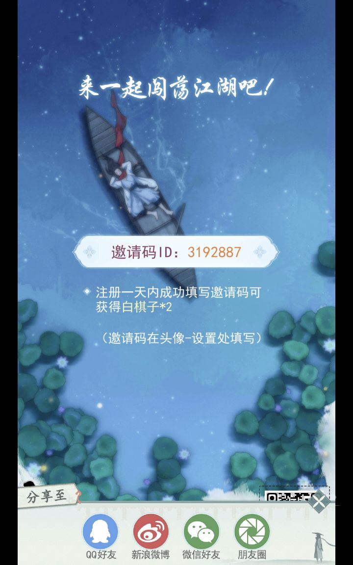 江湖悠悠萌新各种攻略大全!棋谱/棋子三倍/食谱/药谱/酒谱/装饰/特产/看病诊断 /藏宝图/出行如果觉得有用可以填我的邀请码!可以获得新手奖励白棋子x2!拜托啦!1.进入游戏2级后,点击头像,设置,输入邀请码 2829656可领两颗白棋子,可以抽武学!建议棋子多存一些再抽,因为有三倍武学机制,每个人有55次三倍武学的次数 (注册后超过24小时就不能填写邀请码了)讲一下三倍是什么意思,很多萌新