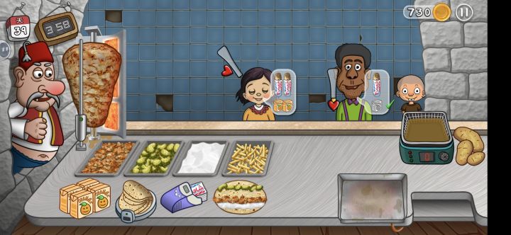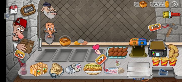 #沙威玛传奇攻略攻略 1.前期先升级工具,自动切土豆→店员补货→自动卷饼→自动包装→自动切肉和炸土豆,可以都先升级一次,然后解锁橙汁,攒多一点钱把烤架一次性拉满,这样单价能上去,一定要拉满。升级第一次之后容易烤糊,对操作影响很大。然后再拉满工具,剩下的挨个升就行了,记得把挑选配料留到最后。2.最后攒5万金币的时候,按照顾客要求的配料来,不熟练的话很浪费时间,沙威玛里面都是需要烤肉的,可以所有都