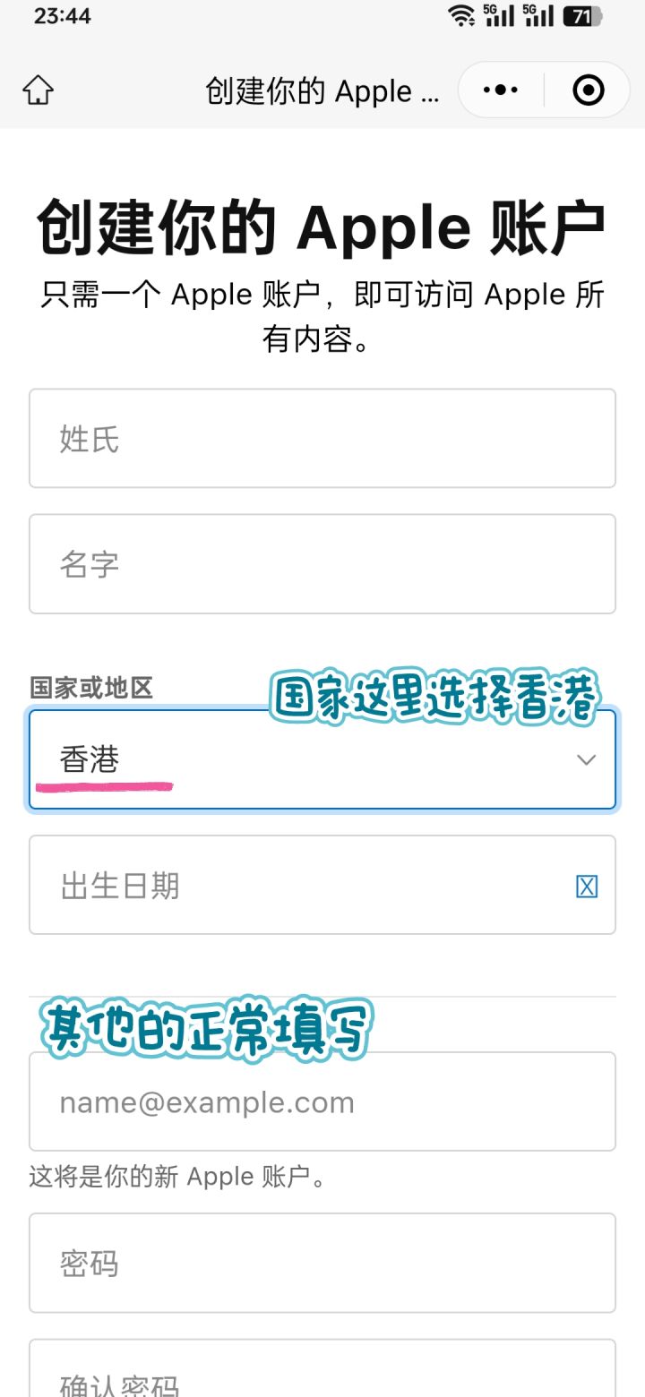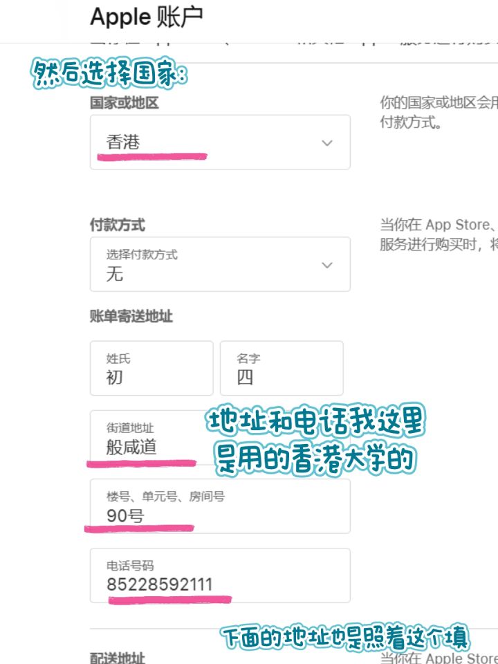 1⃣️前往微信公众号,关注“apple”公众号2⃣️进入公众号,点击右下角 找服务-我的账户3⃣️页面划到最下方,选择注册账户(绑定过的家人重新退出就好)4⃣️注册页面,把国家地区选为香港(其他信息正常填)5⃣️图四标记的两处信息不要打勾6⃣️回到设置页面登陆我们刚刚注册的港区ID7⃣️打开浏览器搜索网址:appleid.apple.com登陆港区ID再点击付款方式-添加付款方式8