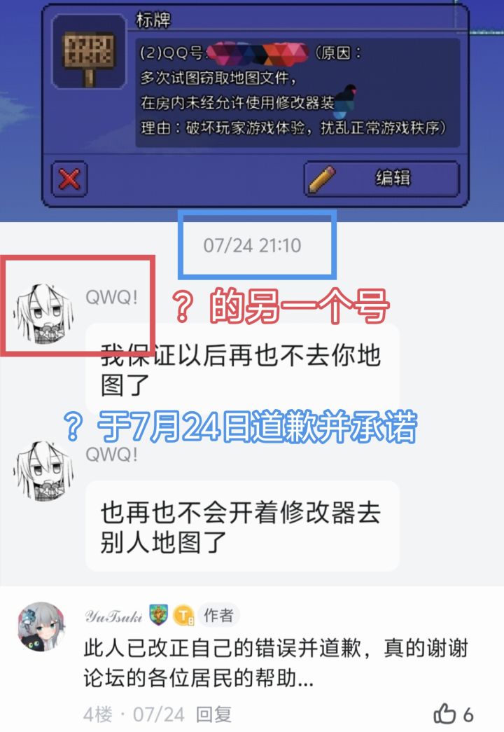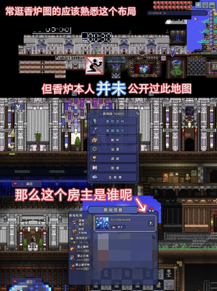顶着牢玩家的全成就干着牢玩家讨厌的事😡我们泰拉在国内小圈子也是大恶人了😭这是——林子大了什么鸟都有【下例为防范措施】拉黑ta(ta指该用户),可以防止ta进入您的建筑房间中(不排除ta有小号,并使用其进入您的房间)若您的建筑地图未公开,但虽有他人的房间使用了您的地图;请不要处于地图被盗的情绪中,请将盗用人的TapTapID和TapTap UID公布,因为这会帮助其他泰拉人当然,有一定能