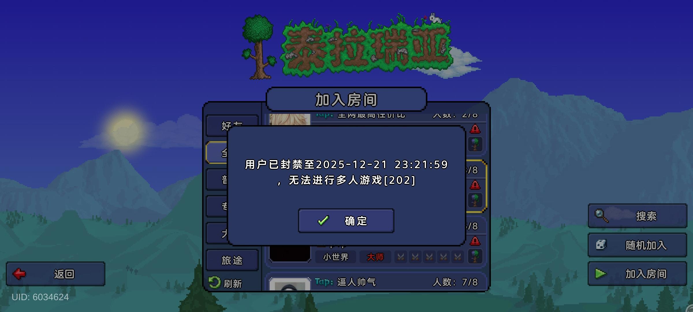 #泰拉瑞亚 #泰拉瑞亚官方 单机建好几天建筑 今天好友申请去他世界联机结果发现号封了?