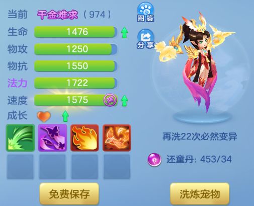 专属回来了,法力还行只比满低一点点,速度低了些,再洗洗看#梦想世界3#游戏日常#洗宠
