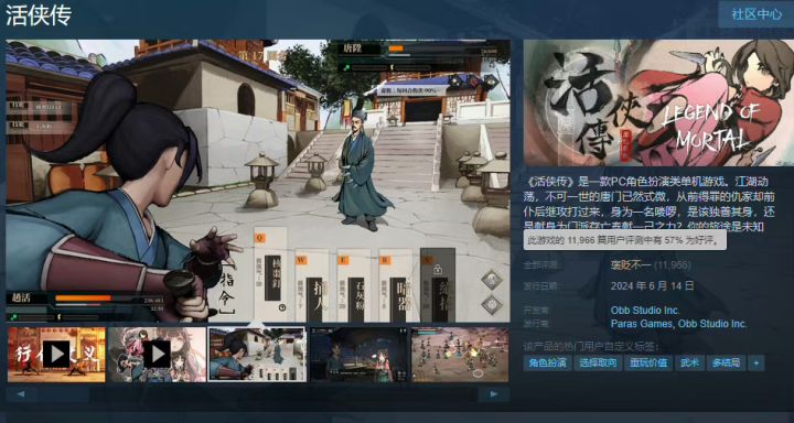 游戏开发团队原始鸟熊于今日宣布,旗下研发的PC角色扮演游戏 《活侠传》 在Steam平台上的销量已成功突破30万套。《活侠传》于去年6月14日在Steam 平台推出。这款游戏讲述了玩家扮演一位资质平庸、不受人待见的唐门杂鱼,在江湖动荡、唐门式微的背景下,面对前仆后继的仇家。玩家需要抉择是独善其身,还是为门派的存亡贡献一己之力。游戏自推出以来,凭借其独特的武侠世界观和角色设定,吸引了众多玩家的热