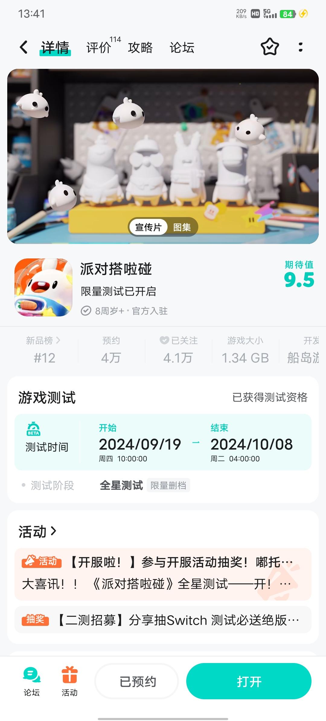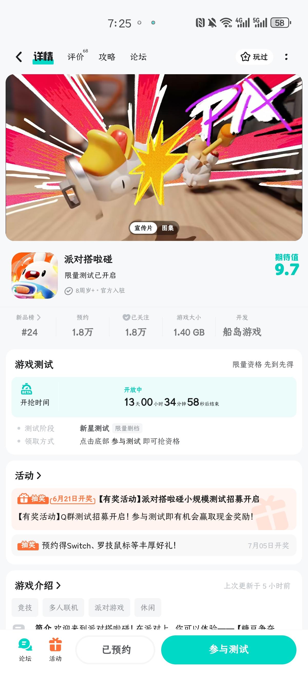 马上要首测了!终于可以预约了,立马预约好了!和小伙伴们期待好久好久了!6月21日就可以见面啦! #游戏安利 #派对搭啦碰