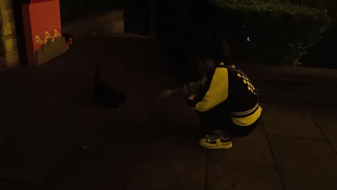 #猫咪 #流浪猫 #爱猫人士 路遇流浪小黑猫,躲在暗处不肯出来,只好投喂两根火腿肠,不敢开灯,害怕吓到它。但愿你顺利成长。#猫猫 #爱心 #流浪猫