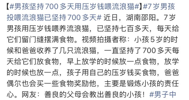 希望每一只流浪猫都能遇上心地善良的人,希望世界所有生命都能被善待、每个生命都能免于哀伤。感谢这位好心的小姐姐投喂小区里的流浪猫,还陪它们玩耍。小区的流浪猫们很警觉的,多数不亲人,我去投喂都远远的不过来,我走开后才过来吃。#喵星人 #流浪猫 #大家都爱小猫咪
