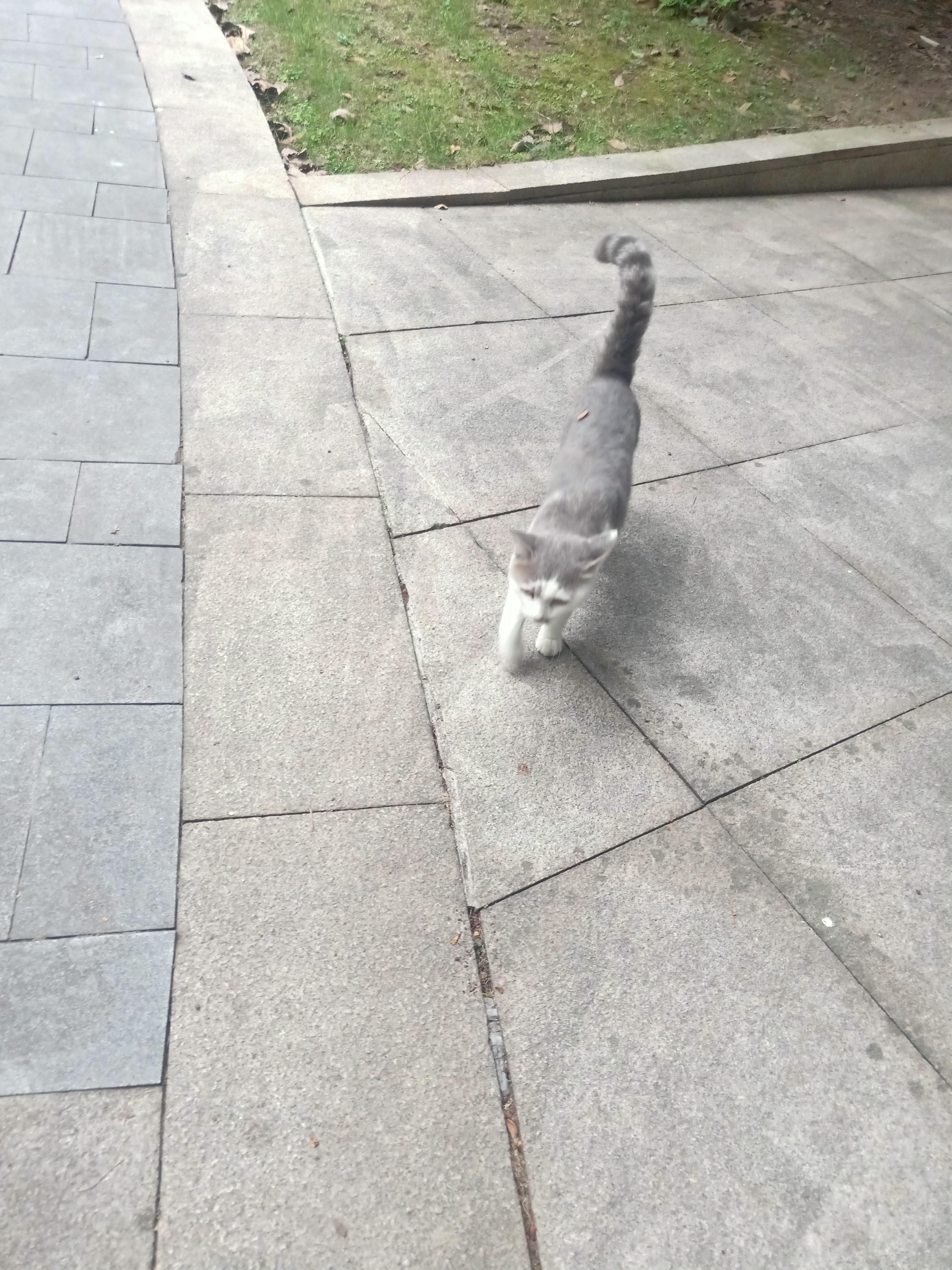 #喵星人 #猫咪 #流浪猫 两只猫咪在小区院子里玩耍,尾巴一摇一摇的,很惬意。