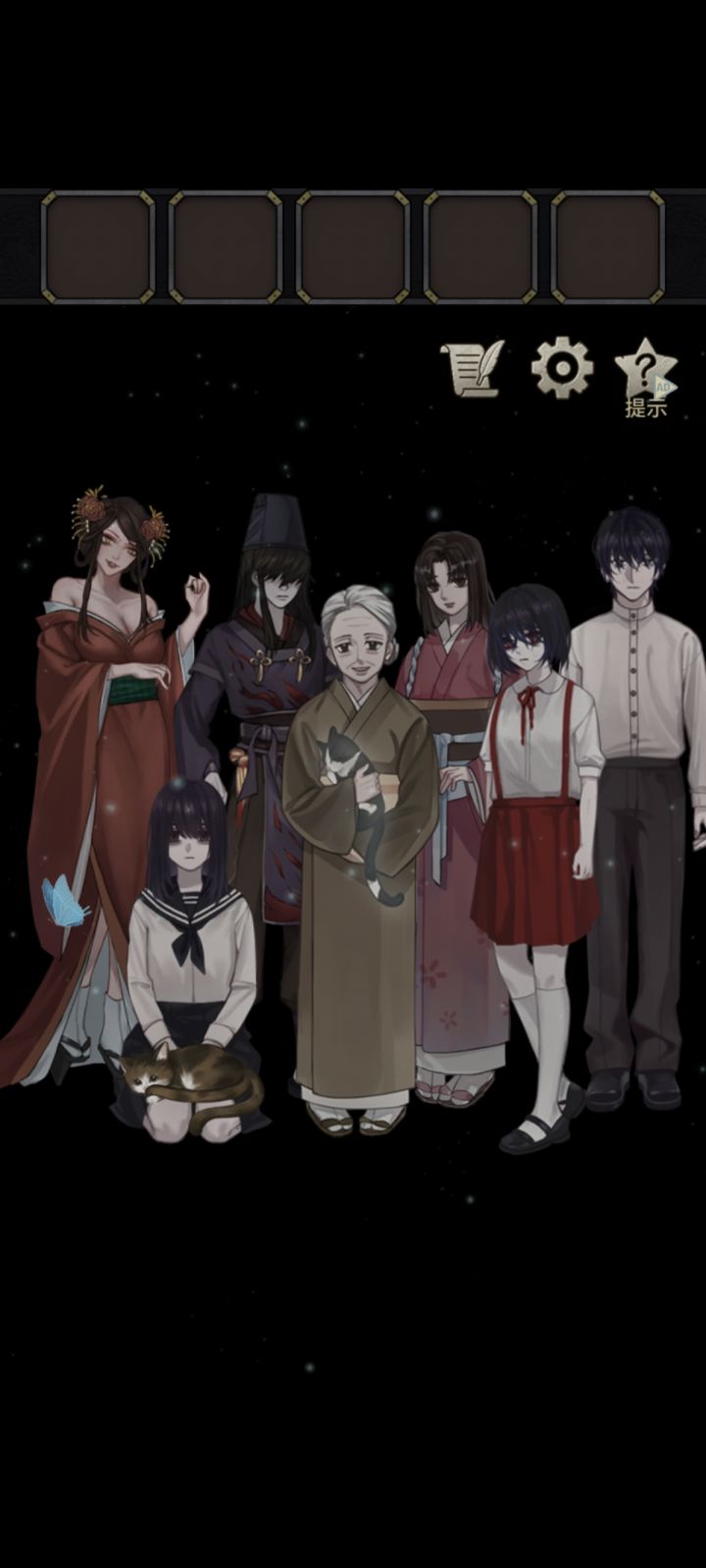||||||第九章1.(当铺一楼)点击地上的玩偶,获得【击鼓棒】(注意玩偶颜色及敲打的次数顺序:绿-3、蓝-2、黄-2、红-4)2.点击花瓶,获得【桃花】3.点击墙上的画像,给她戴上【桃花】,获得【团扇】4.点击招财猫,注意猫猫手上的符号及出现的顺序5.(当铺二楼)拿【击鼓棒】给妖怪,根据玩偶敲打次数顺序及颜色,按(绿-3、蓝-2、黄-2、红-4)的顺序打鼓,吵醒猫又6.点击柜子